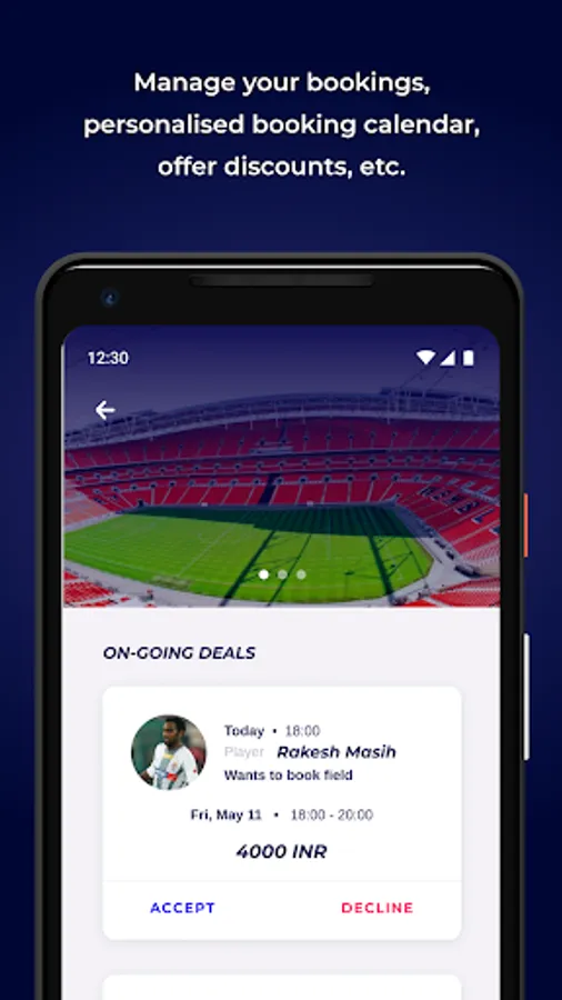 - Offer “Full Cash On Arrival” feature and Online booking of your ground.
