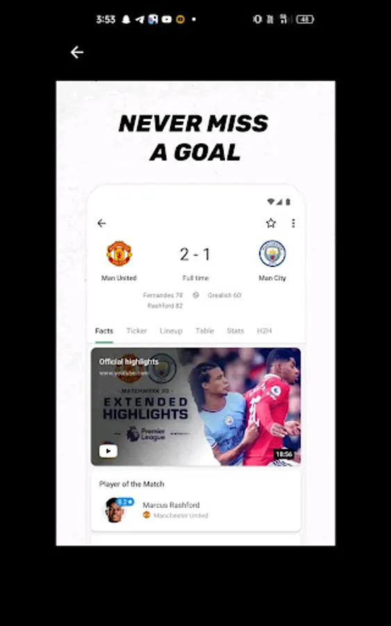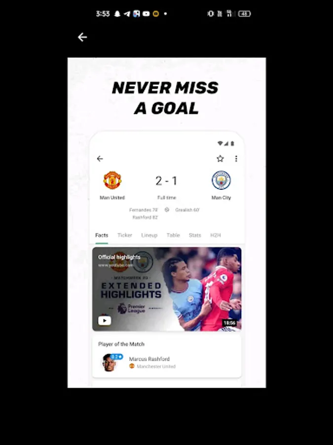 4. Personalized Notifications: Never miss a beat with personalized notifications tailored to your favorite teams, leagues, and players. Receive instant alerts for goals, match results, and breaking news to stay informed.
