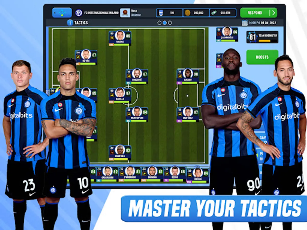 Tactically manage your players from training ground coaching to live pitch-side instructions.