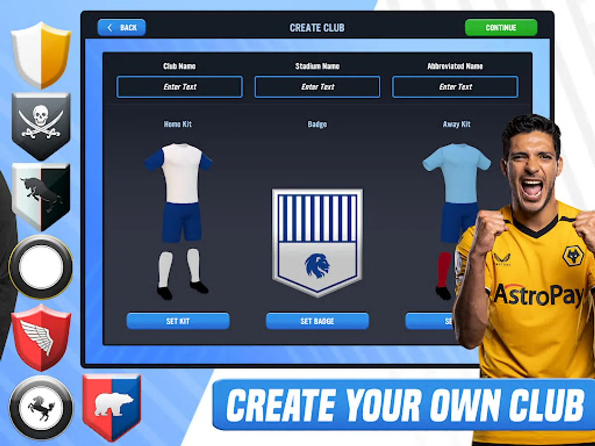 Become more than a manager with Create-a-Club: a brand-new additional game mode for Soccer Manager 2023. Bring your own dream club to life, choosing everything from club name and badge to your home and away kits. Unlock more customization options as you play to make your new club your own.