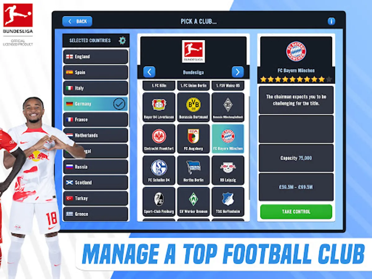 Take control as football manager of your favourite Bundesliga football club.