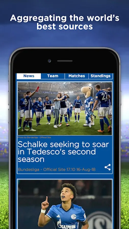★ Real-time stories and news aggregated from top football news journals and portals around the world such as: 11 Freunde, Kicker, ESPN, Deutsche Welle, TEAMtalk, SKY, Goal.com and many more.