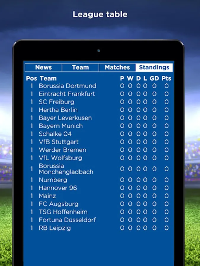 ★ Full covering of all Bundesliga (Fußball-Bundesliga: Deutsche Fußball Liga), UEFA Champions League, UEFA Europa League, DFB Pokal, DFB Ligapokal, DFL Supercup and other tournaments.