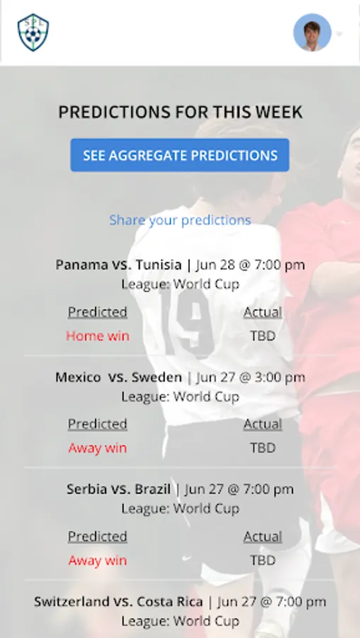 Before the matches kick-off - SPL players will be able to get access to the aggregate predictions if they wish - to see what the wisdom of the crowd has predicted for the outcomes of the seven matches. Some people may find these predictions interesting!