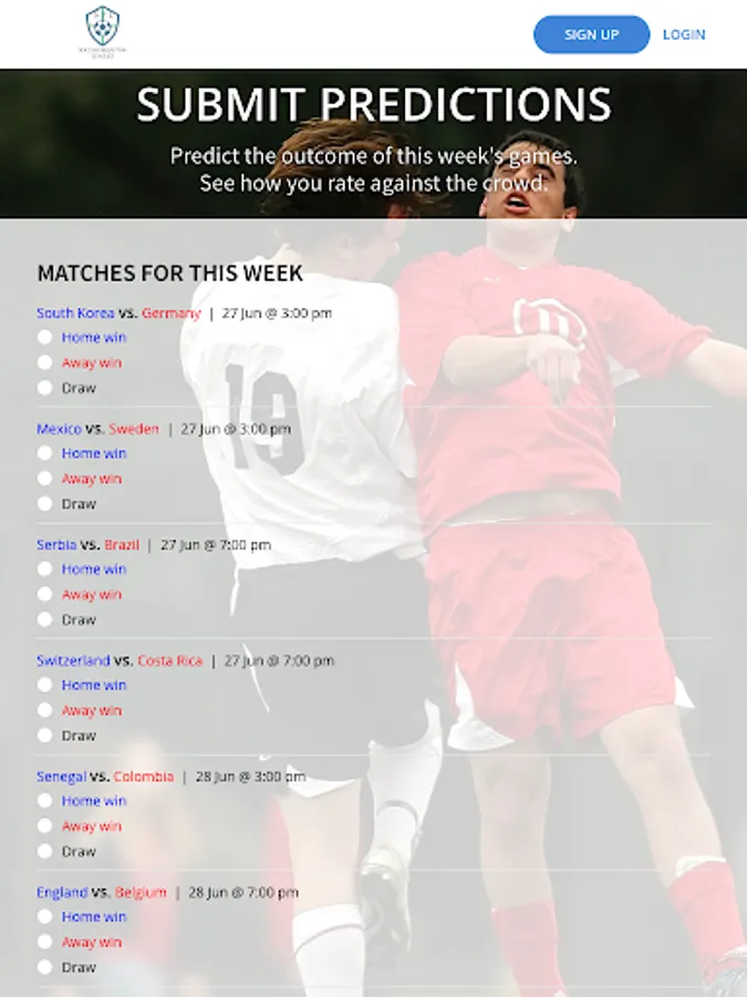 Soccer Predictor Leagues (SPL) is a free soccer (football) prediction game that allows players to test their knowledge of European, US, Asian and African Football.