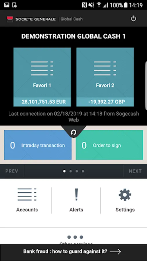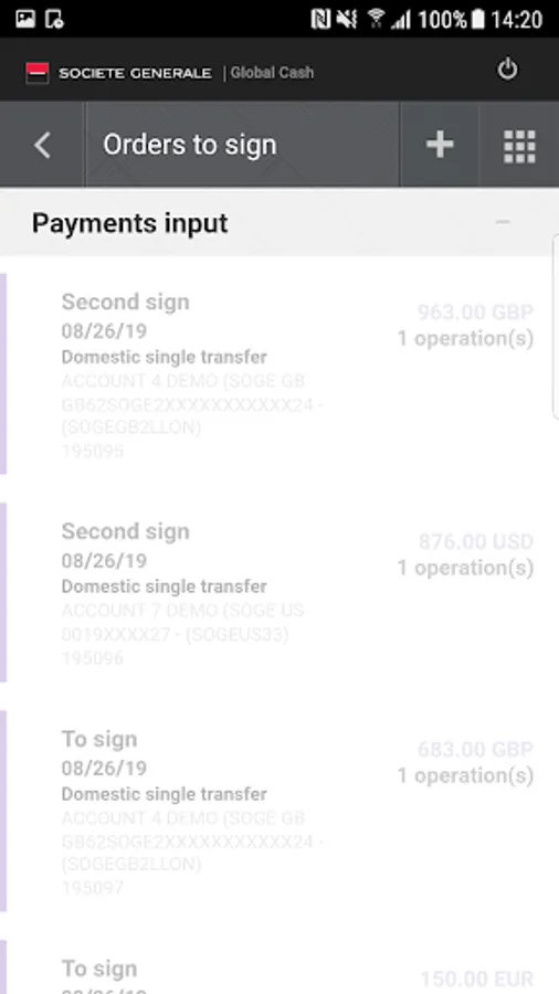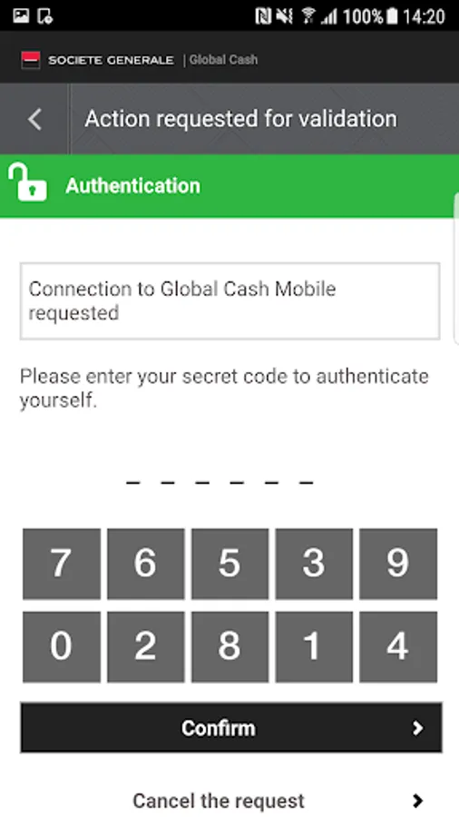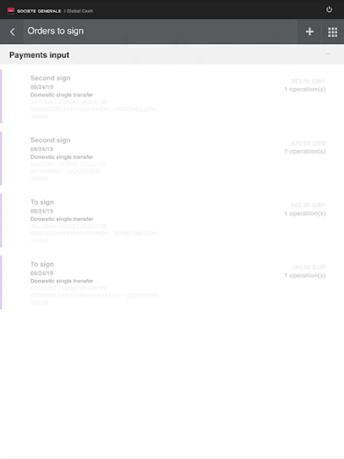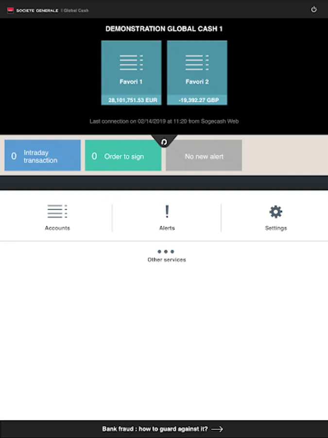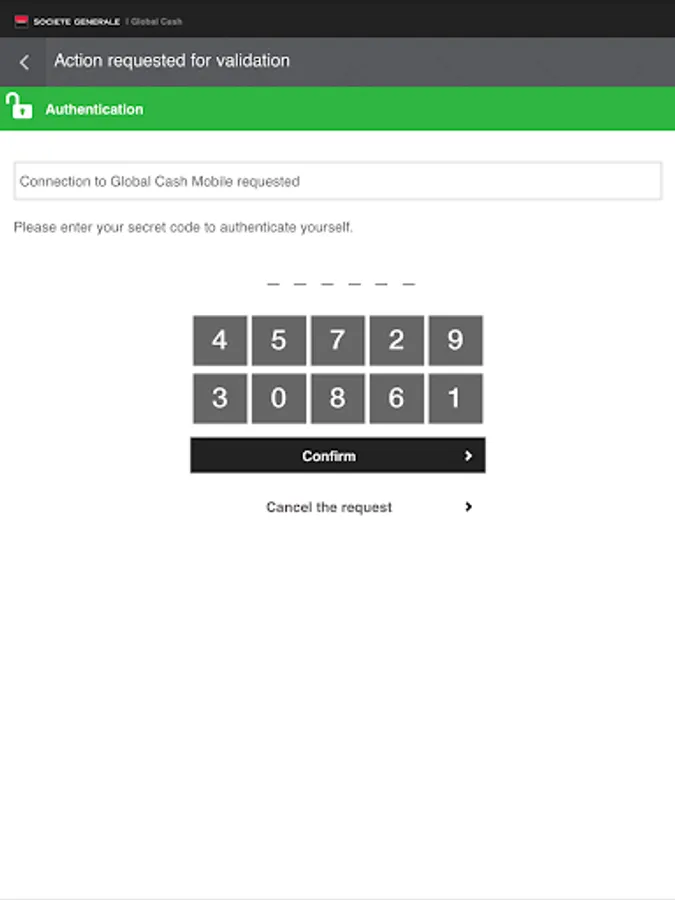 The services accessible on Global Cash mobile must be subscribed in advance as part of your Global Cash contract. For any questions, contact your usual bank advisor.