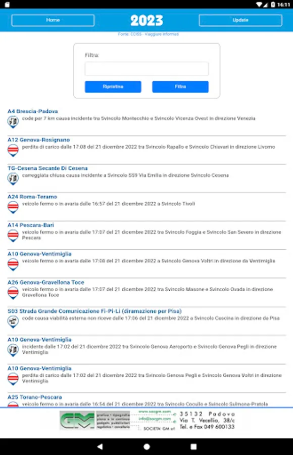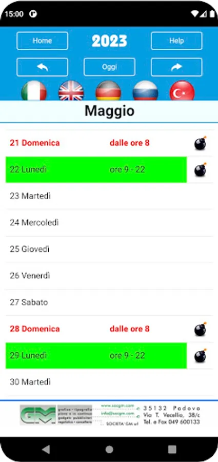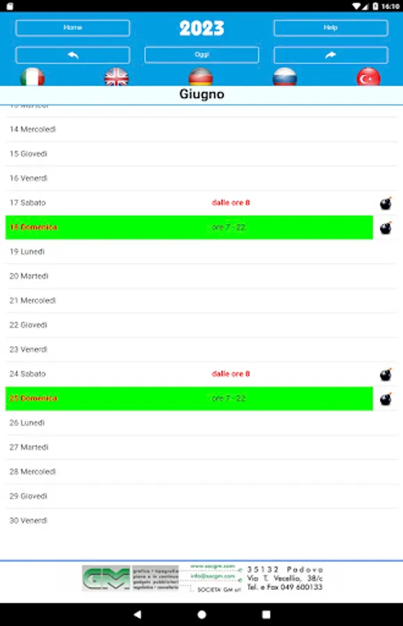 In addition to the Italian language, the app is translated into English - German - Russian and Turkish.