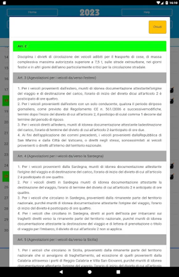 Traffic ban, outside built-up areas, for vehicles and vehicle complexes, for the transport of things, with a maximum total authorized mass exceeding 7.5 t. for the year 2023