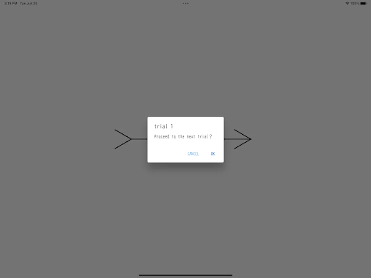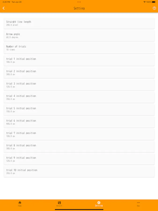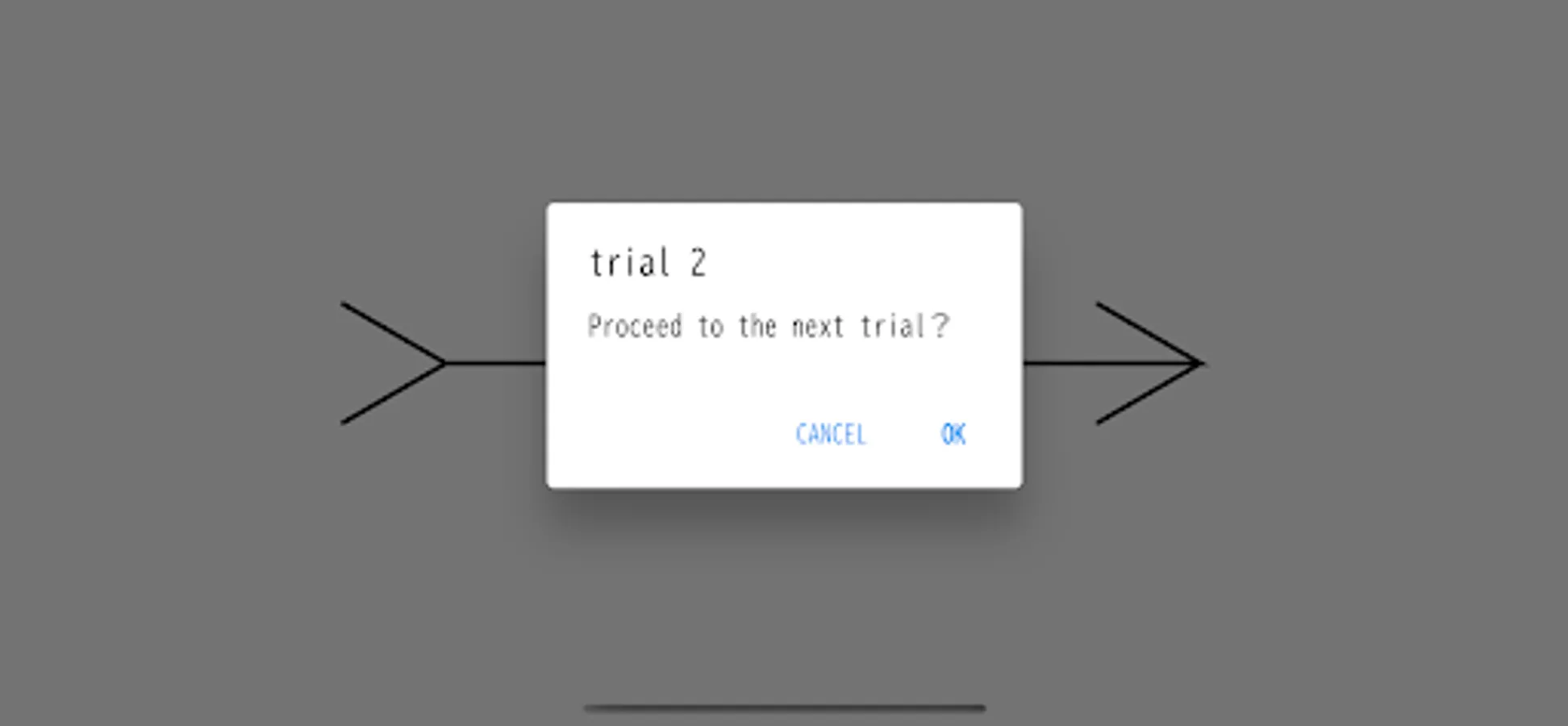 You can record the amount of illusion (unit pixel) by tapping at the position where the horizontal line segment of the extroverted figure and the horizontal line segment of the introverted figure are equal in length and "visible".