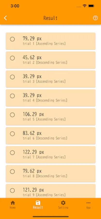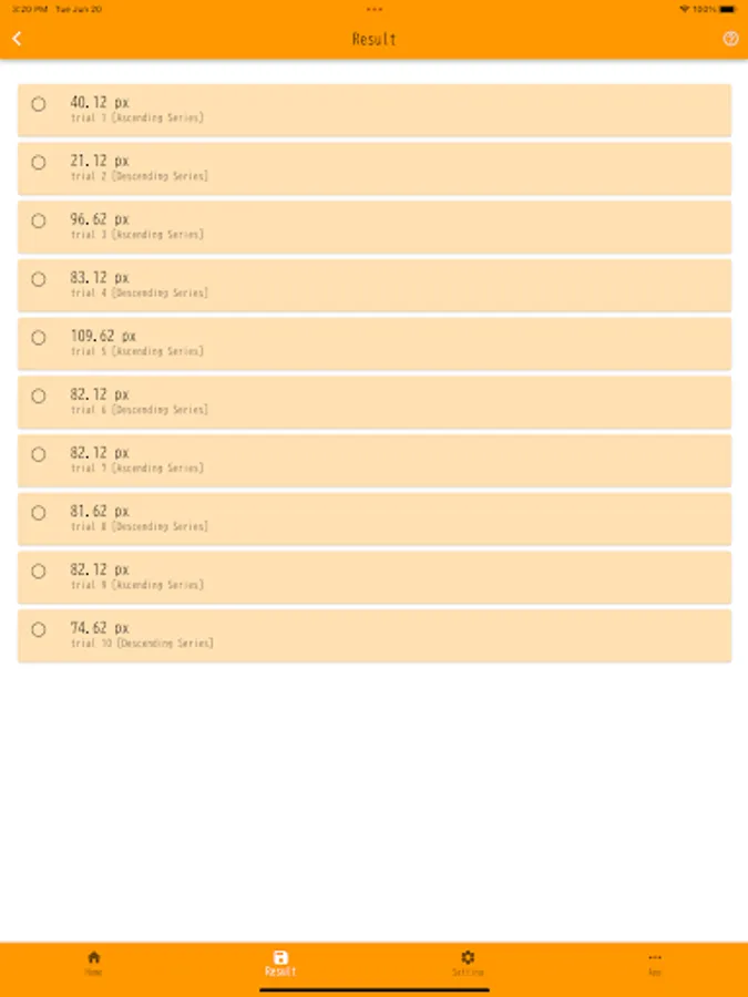A total of 10 trials can be recorded as one set, and the results will be overwritten when the next set is performed.