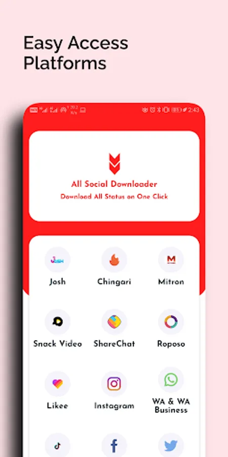Application that allows users to download Videos and Images from all Social media platform. You can Save Facebook, Instagram, Whatsapp, TikTok, Twitter Videos and Images with just one click