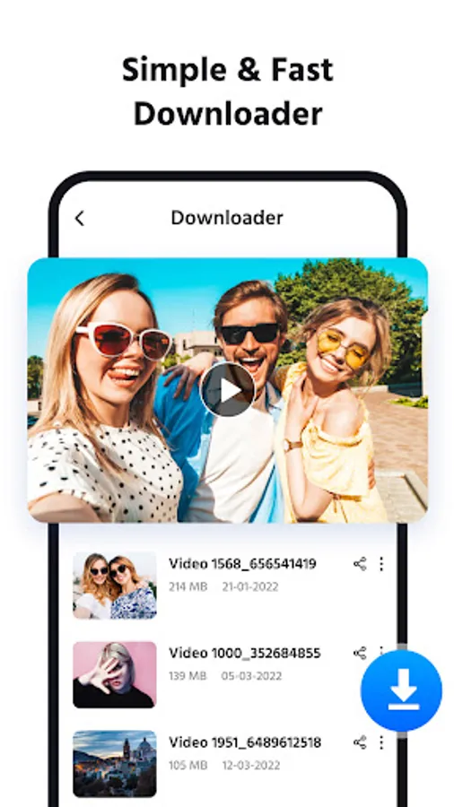 Video downloader is a super fast downloader, completely free, download videos by one click in built-in browser. Simple operation can help you download videos and repost videos. And can guarantee your safety to the greatest extent.