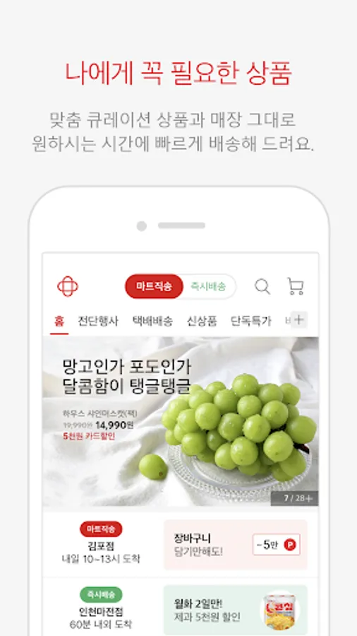 - Magic Delivery: Direct delivery from the store! Same-day delivery at your desired time from a nearby Homeplus store, free delivery on orders over 40,000 won.
