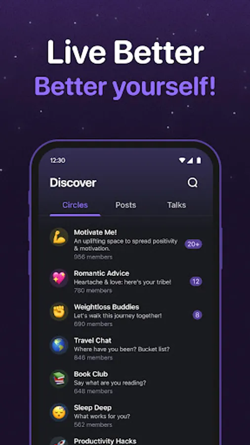 Wisdom is home to many interest communities, which we call Circles, covering topics including: wellness, sleep, nutrition, stress, mindfulness, fitness, weight loss, career, relationships, podcasting, parenting, spirituality, and health.