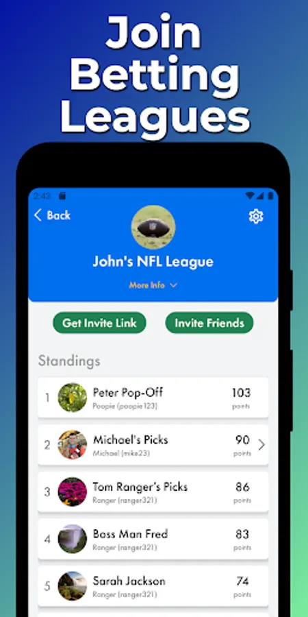 With our online betting app, you can make picks and predictions online and wager with your friends. Wagers can be placed on a range of sports and topics.