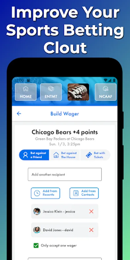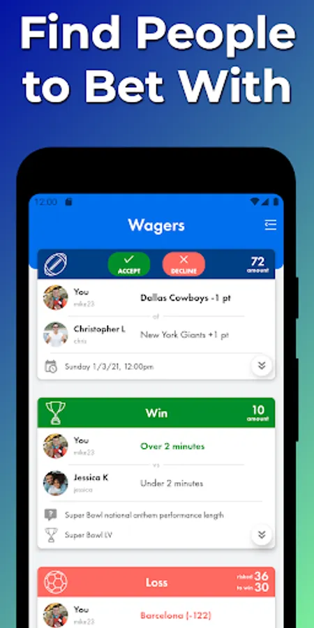 Bet on sports for free! Bet with friends, track your bets, play solo, or find people to wager with! Join prop betting fantasy leagues, predict game scores in sports and football betting pools, and create custom NFL pick'em leagues. It's social sports betting as you would from a bar stool at your local sports bar. Find out why thousands of casual and hardcore bettors trust WagerLab as their betting and tracking app for friendly bets!