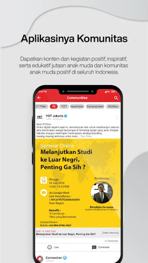 SocialConnext is committed to continuing to build youth and youth communities through an application that can "Connect all communities for a stronger nation". Now you can get millions of insights to achieve success at a young age and connect with millions of positive young people in one application.