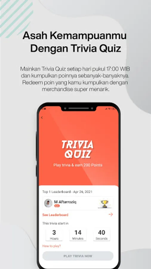 3. Hone your thinking skills through Trivia Quiz every day at 5 pm. Let's collect the points!