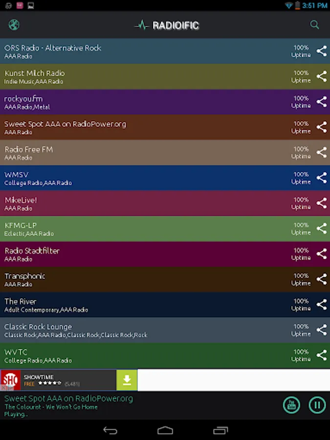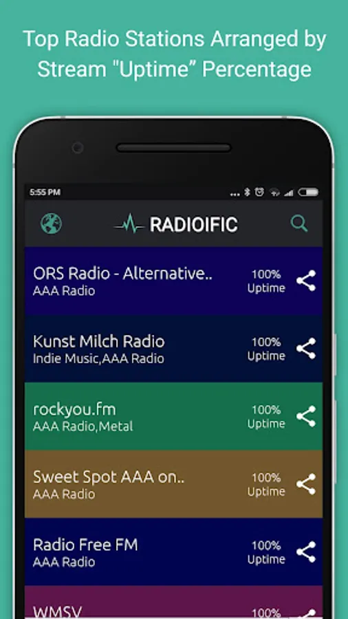 *Radio Stations aggregated from only the best sources arranged by “Station’s Up-Time” percentage.