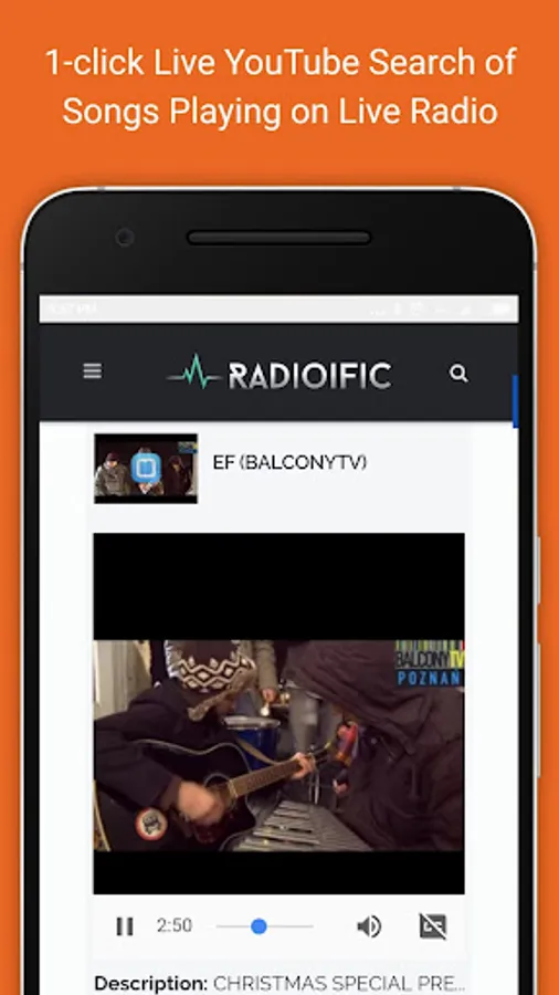 *1-click YouTube Search of any Song Playing on Live Radio.