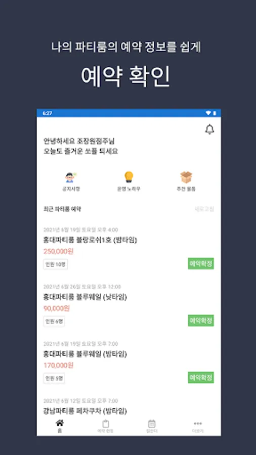 Real-time reservation confirmation and reservation history confirmation are provided as basic functions, and various functions such as communication function and product setting change will be provided in the future.