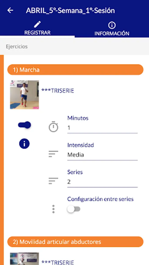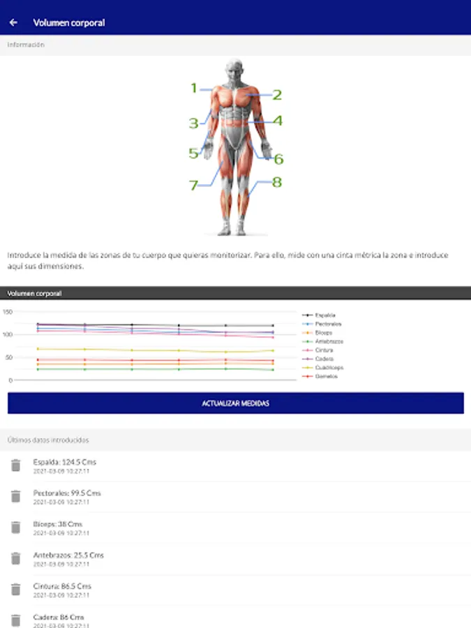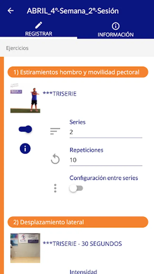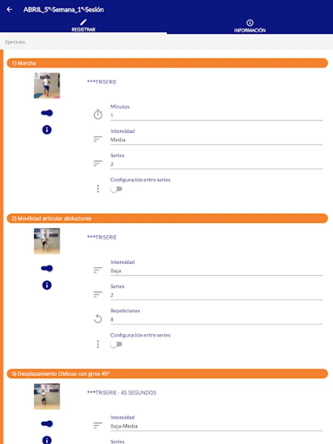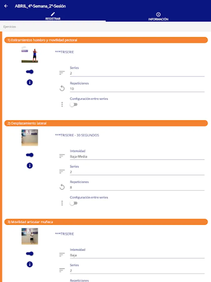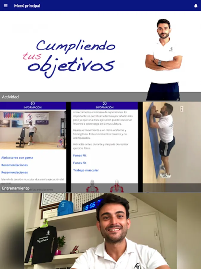 - Management of training with video tutorials, recommendations, contraindications and muscular work.