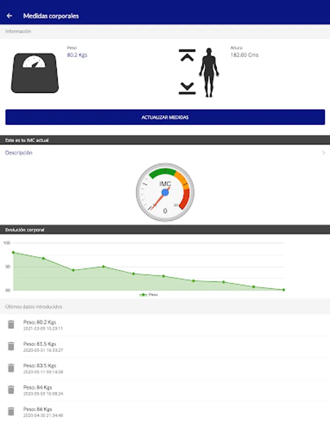- Medical control: Muscle analysis, control of dimensions and body volume, body composition, blood pressure, heart rate, segmental analysis of fat and muscle.