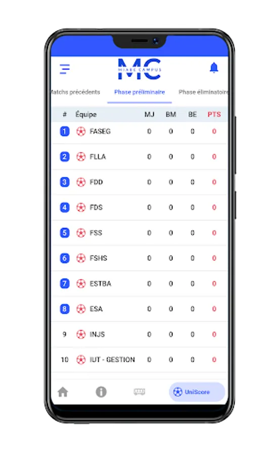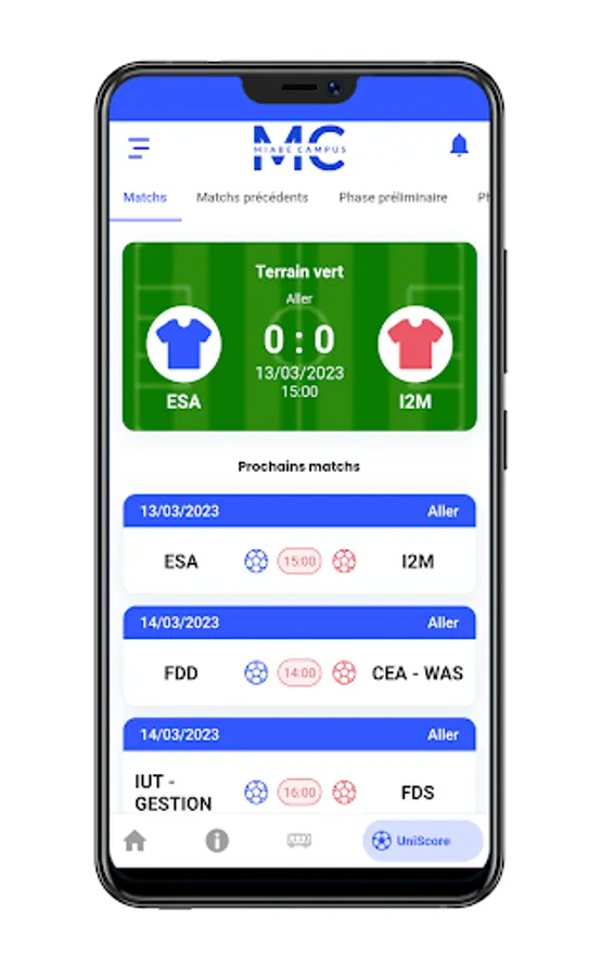 • Follow live college league scores and game information