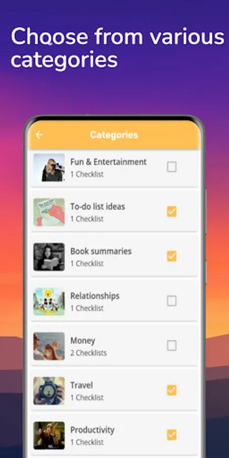Discover favorite topics among many: productivity, health, money, relationships, career, business, entertainment, book summaries, to-do list ideas, and many others!