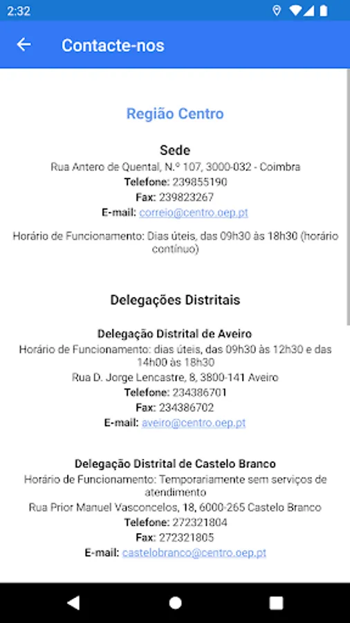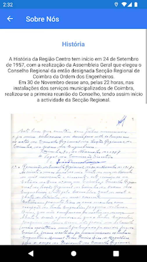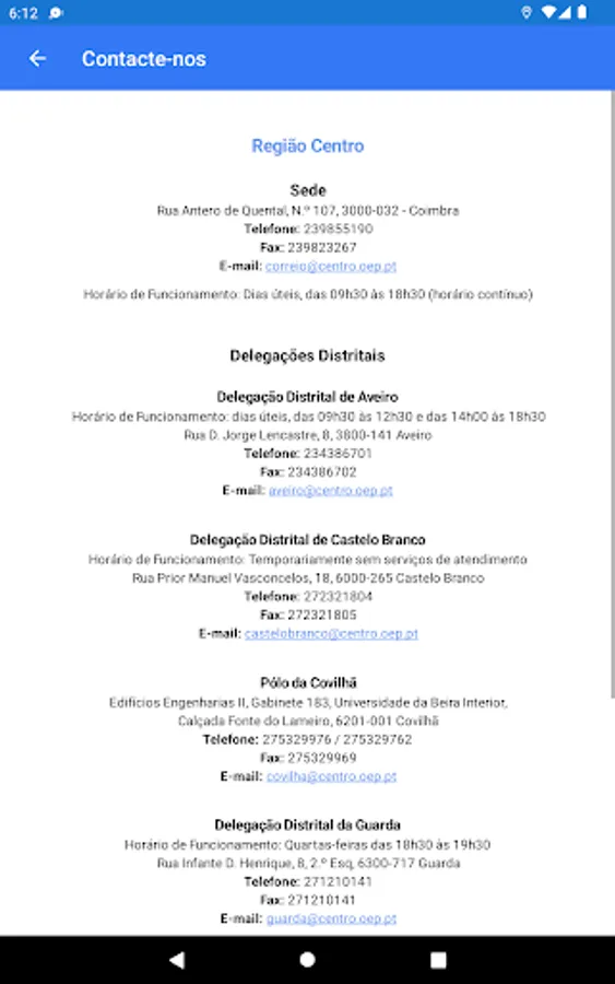 The main objective of this application is to allow the exchange of contacts between Engineers in order to facilitate communication between them. The application allows filtering by colleges on an interactive map, which allows identifying Engineers who live nearby and in this way create ties and expand the social network. In this app you will also find: Useful information such as International Protocols (Africa, America, Europe); Historical information about the Order of Engineers of the Centro Region; And the contact list of the Headquarters of the Centro Region, as well as all the District Delegations.