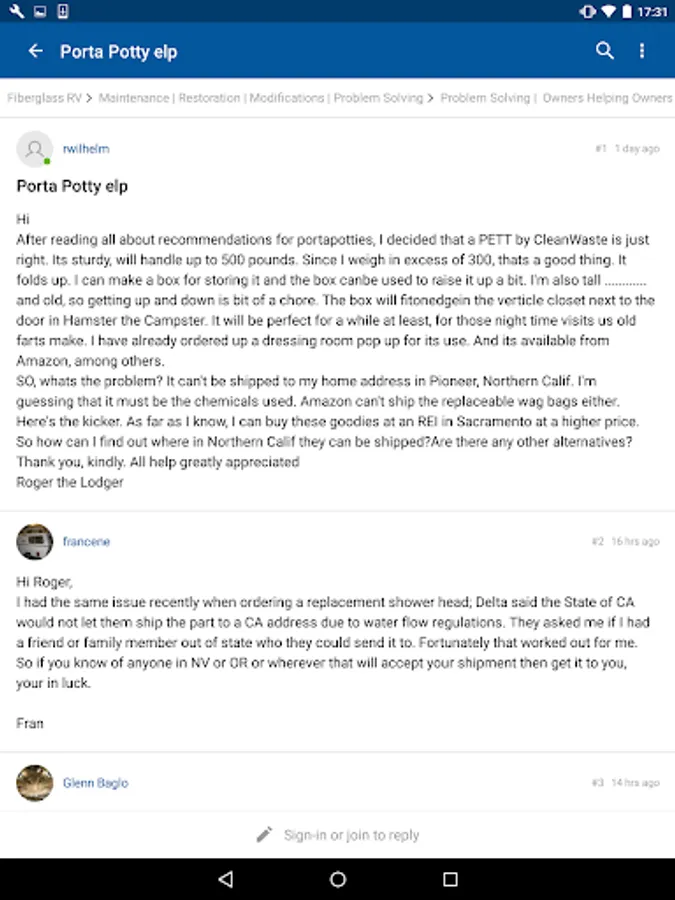 FiberglassRV.com is the leading online community for owners of Fiberglass RVs.. Our app allows you to access our forums on your Android device so you can post questions from the road, upload photos to let other Fiberglass RV owners know what you are up to and stay connected with other Fiberglass RV enthusiasts.