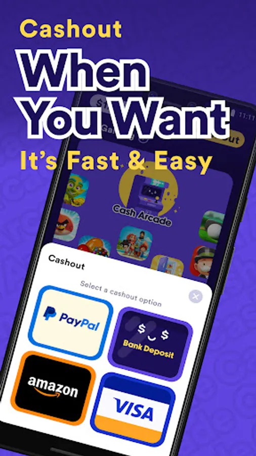 Unlike other apps that use confusing points systems, we deal only in real money. Cash out easily to PayPal, Amazon Gift Cards, Virtual Visa, or your Bank Account.