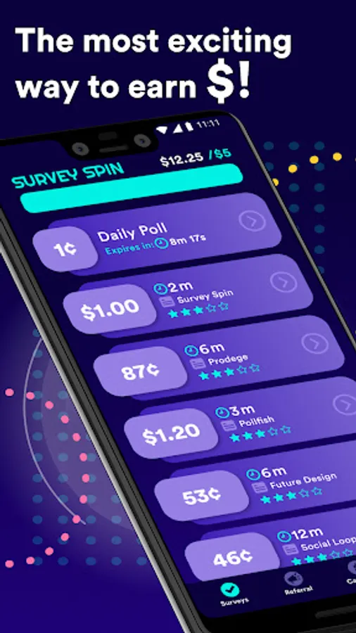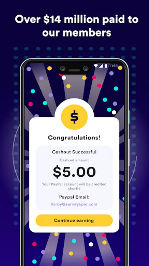 Earn real cash the easy way. Survey Spin members have earned over $14 million, and a staggering 82% of new members earn $5 on their first day of downloading.