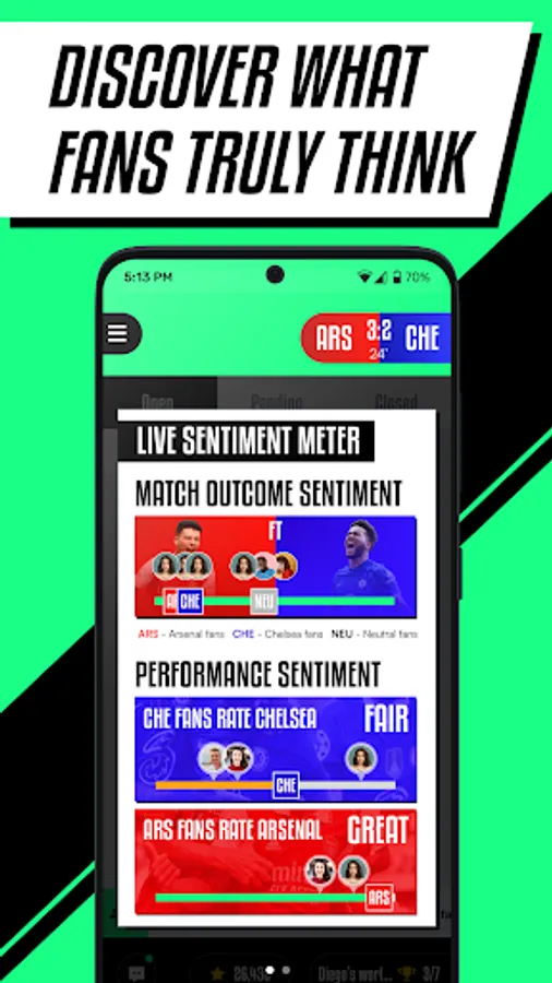 Engage in the excitement of live football matches. Play in real-time, compete with other fans, follow second-by-second stats, insights and have your say with our gamechanging Live Performance Meter.