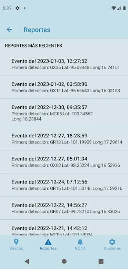 Obtained from Cires A.C., are the relevant seismic event reports for the Seismic Alert System of Mexico (SASMEX). They are not reported in real time and the Seismic Alert is reported from an independent real time source.