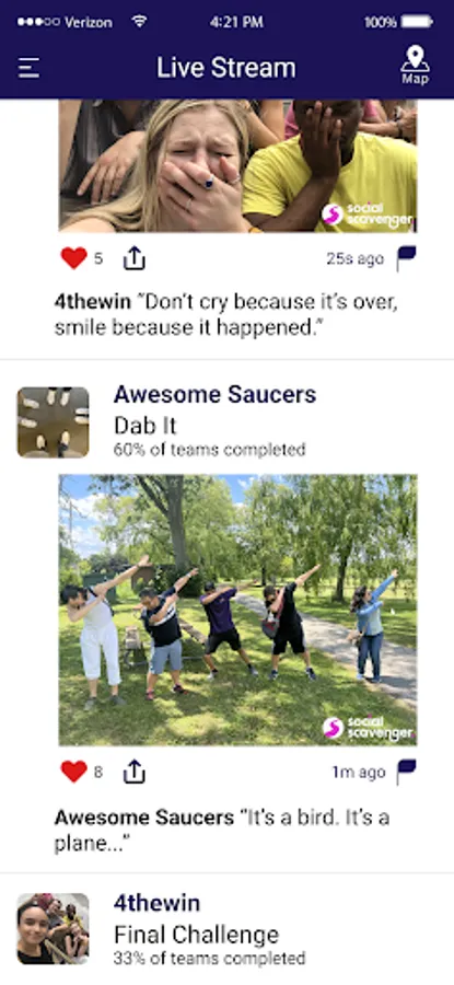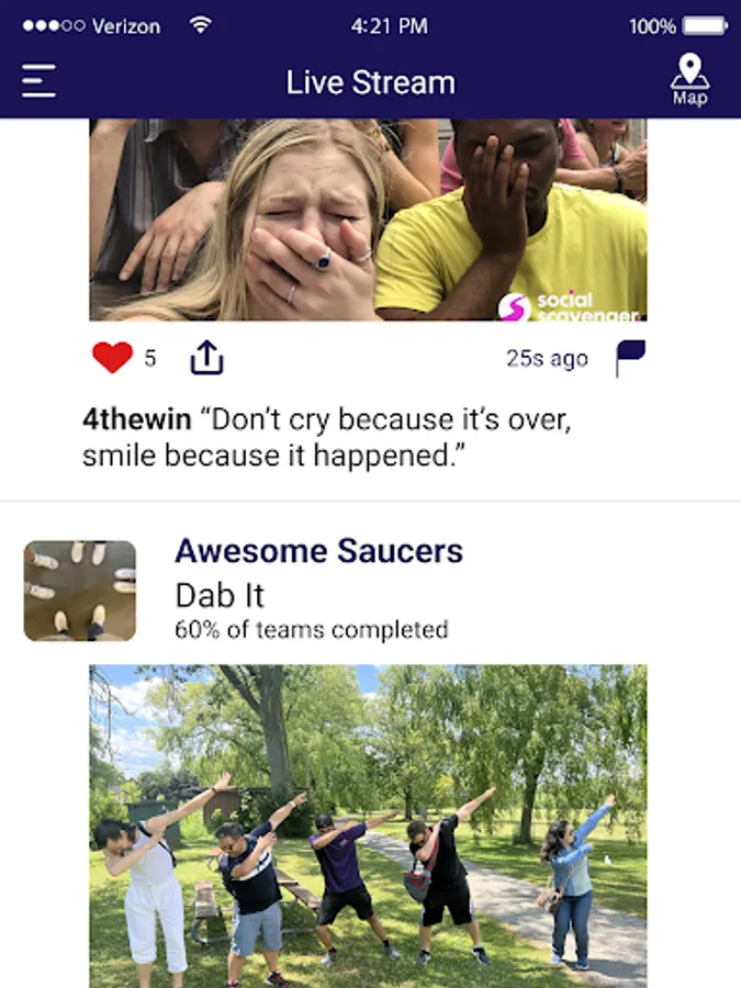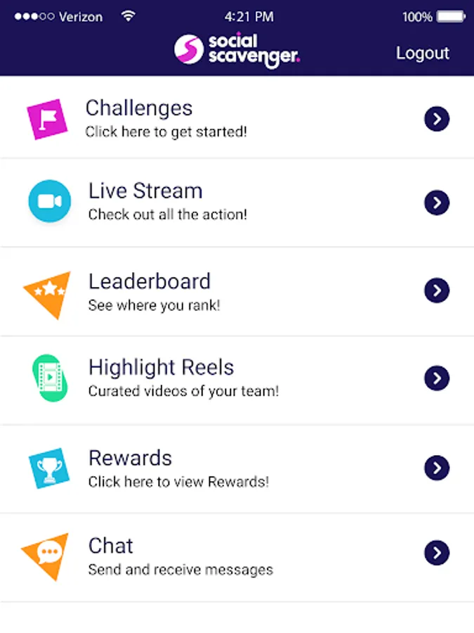 Social Scavenger events are private to your audience and feature real-time leaderboards, live streams, chat function, highlight reel videos and so much more.