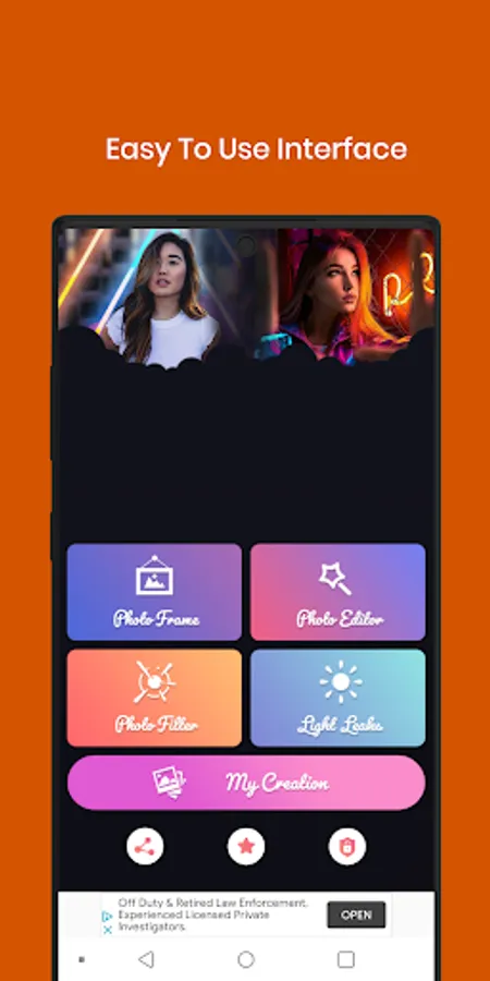 - you don’t need a pro photo editor to add some style to your images with various photo filters such as Black&White, Neon Glow, Oil Painting and many others.
