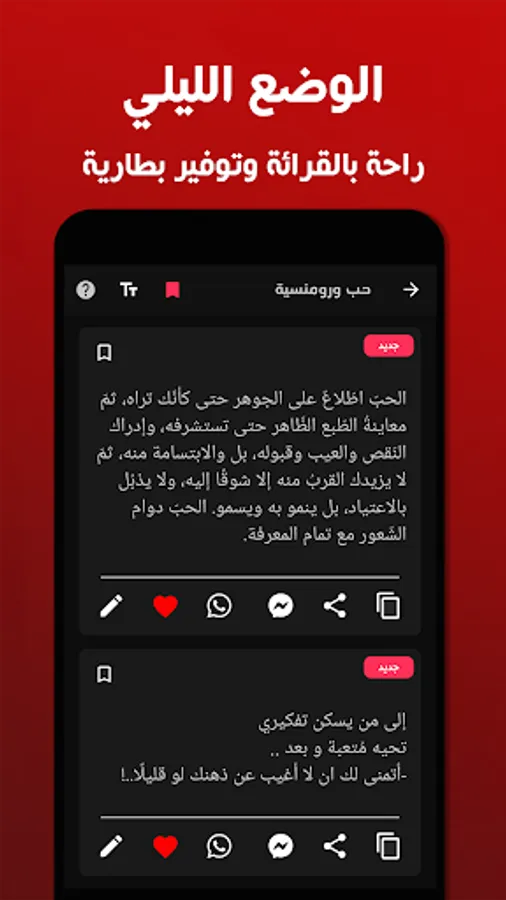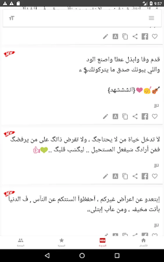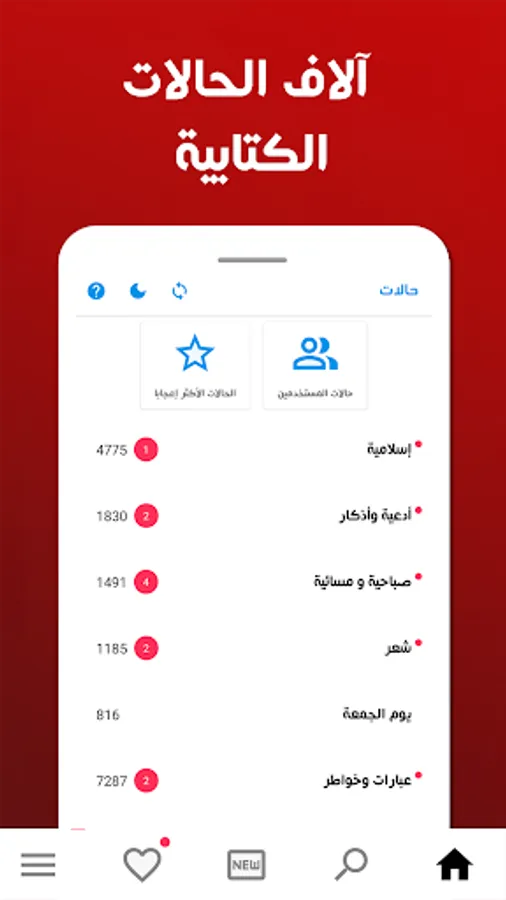 The application contains many sections such as the section of judgment, love, jokes, sadness, friendship ... etc.
