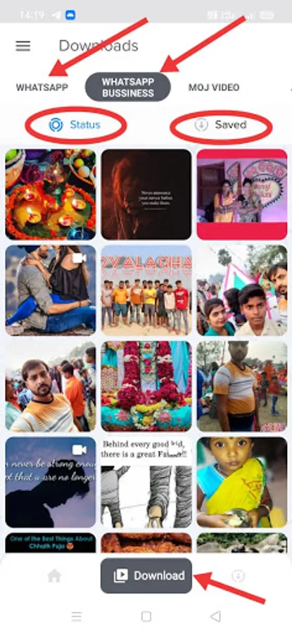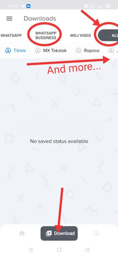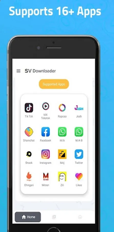 You can download SnackVideo, ShareChat, Roposo, Likee, Whatsapp, WA Business, TikTok, Twitter, and Instagram Videos and Images.