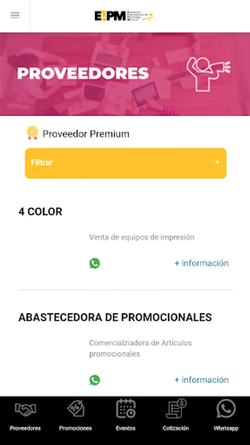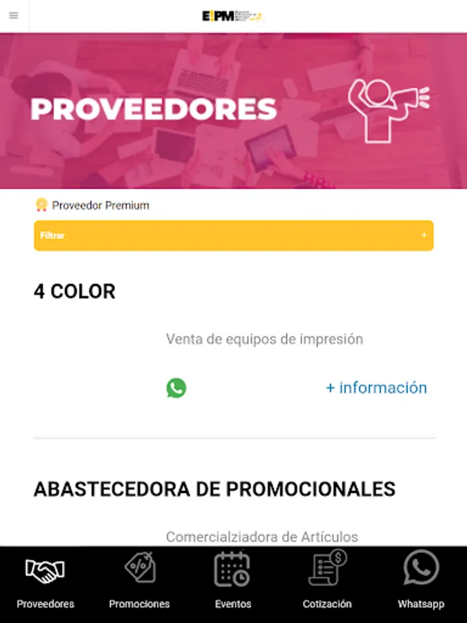 Application where you can find the best and reliable providers in the advertising industry. In addition, community members will be able to select the categories of products and services that interest them and thus receive via notification, promotions, news of these categories. Members will also have the facility to quote the product or service they need to 1, 2 or more suppliers in a single action and wait for them to respond. Another functionality for members, easy communication to the WhatsApp provider. Finally, there will be an online store with products only for sale to the advertising industry.