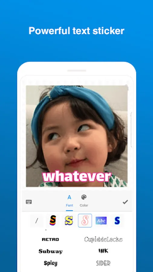Sticker Maker Provides numbers of popular text sticker’s fonts selection.