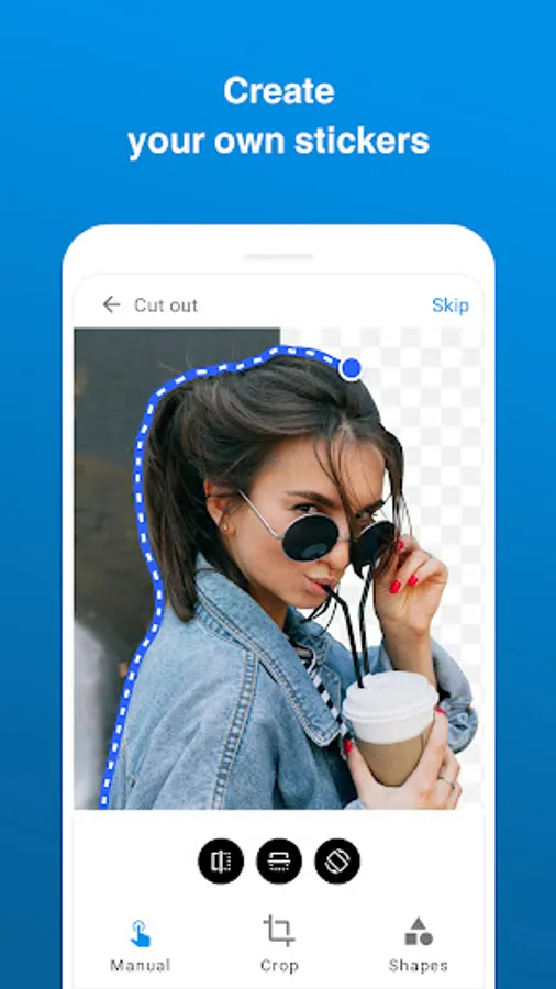 This sticker maker app provides multiple ways to cut your pictures during making stickers. Contains squares, select all, free-hand image cropping.