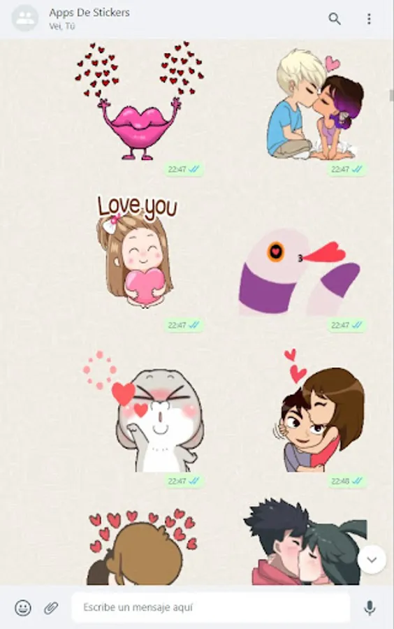 - Easy to use: Our animated kiss stickers app is very easy to use! You just have to download the application, choose the sticker you want to send and share it with your friends and loved ones in your favorite chats.