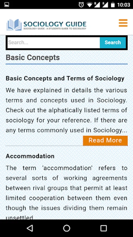 The sociologyguide.com app allows you to read content on the site in a book like format at your convenience at a place of your choice. Reading on the go is now possible with this app meant for students who would like to study while on the bus ride or while waiting for other things.