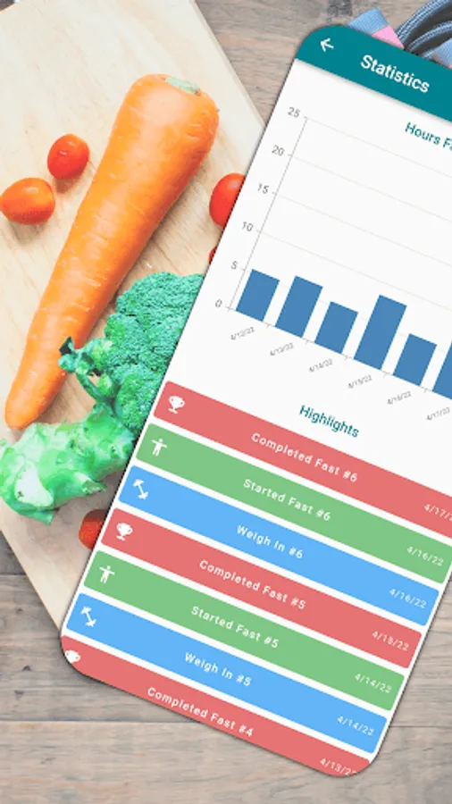 ✔ Compare your recent fasts with charts and timelines