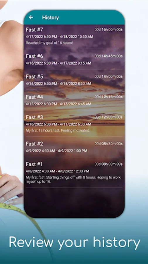 ✔ Quickly access your entire fasting history, with the ability to add, edit or delete entries