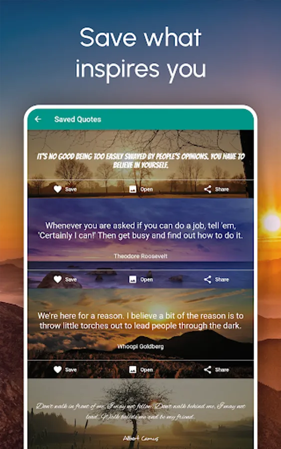 Love a piece of wisdom that really inspires you? Save it! Just hit the save button below any of the daily quotes and it will be saved. Any daily quotes that are opened in the quote maker are also automatically saved.