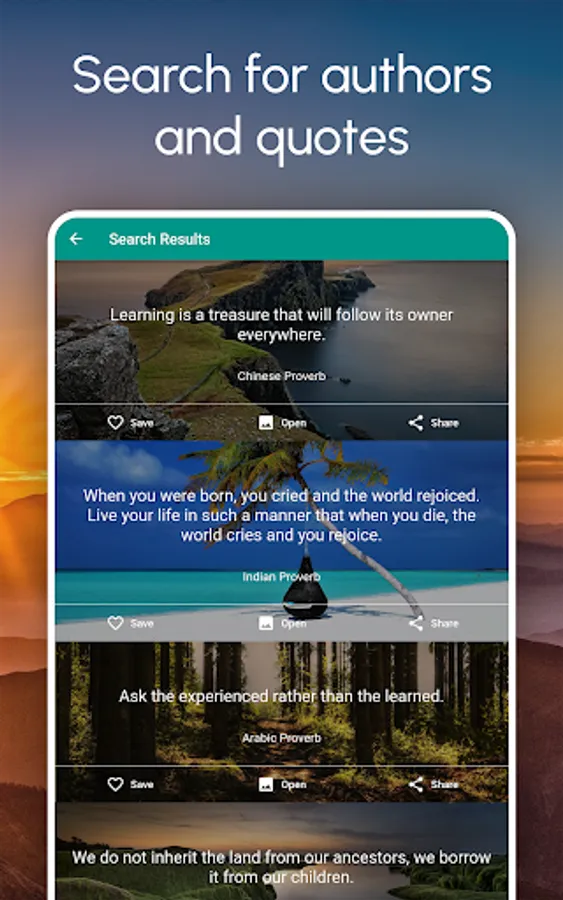Carry on where you left off. You'll be returned to the last saying you read when you open the app again. You'll always have fresh quotes and sayings filled with wisdom to read and create.