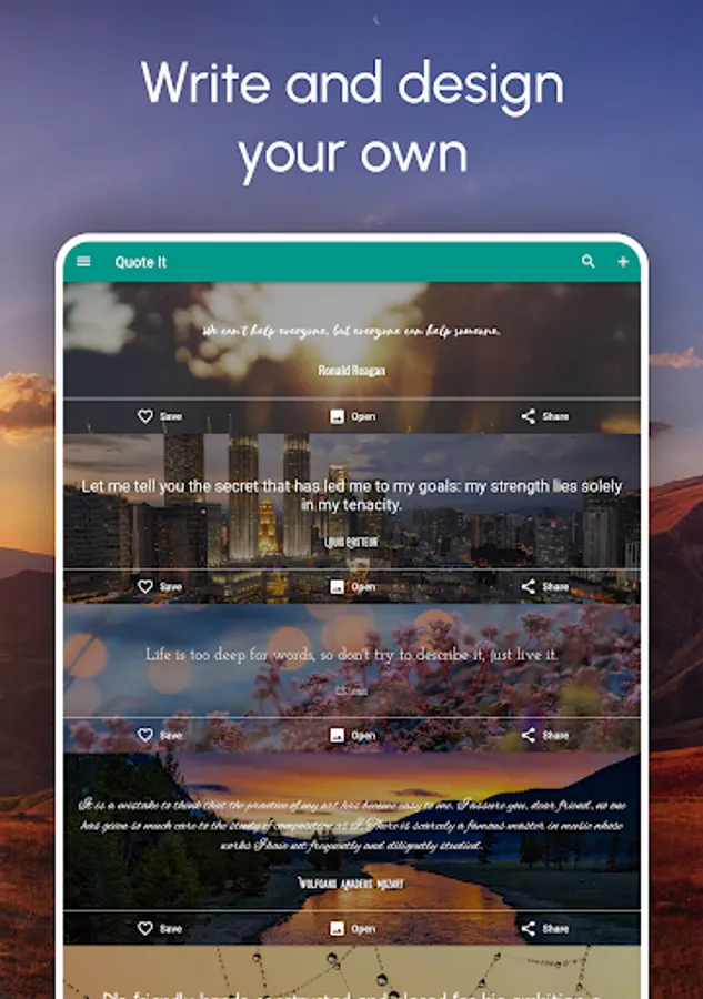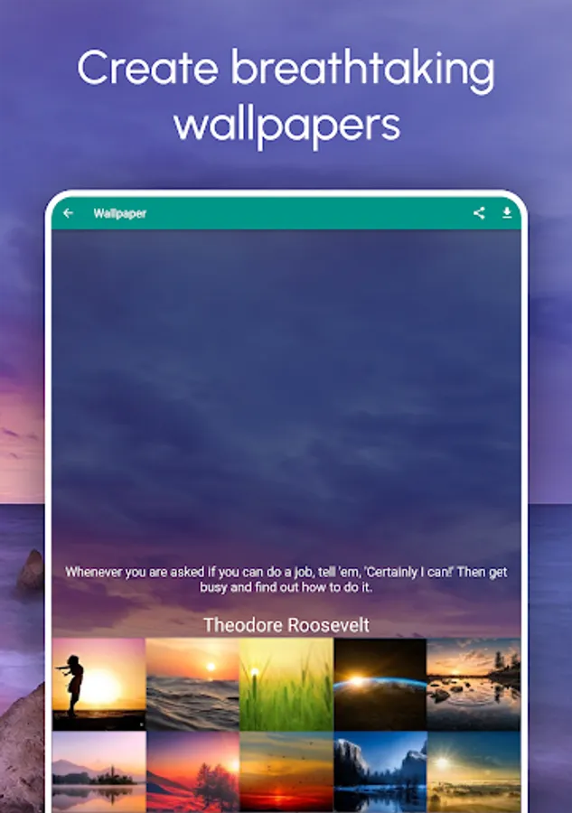 Quote It gives you the power to design amazing backgrounds and wallpapers the way you want to, and it lets you browse through thousands of motivational quotes. Keep scrolling for as long as you like; there are always more inspirational quotes waiting!