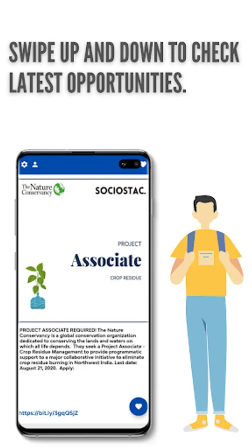 — Browse through a brief summary of each opportunity in fraction of seconds. Keep swiping through.